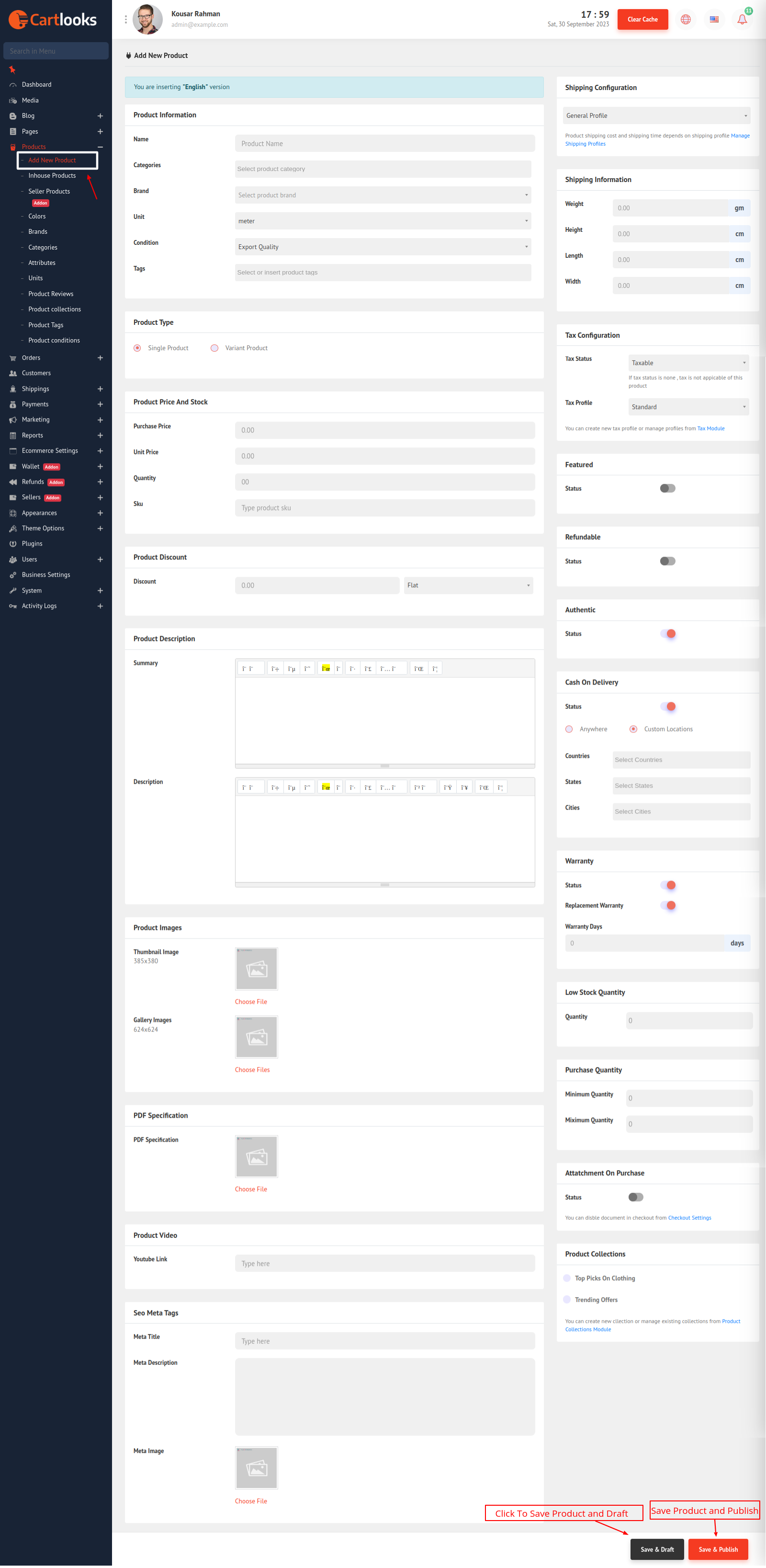 In this post, we will learn how to Create New Product. Go to Products > Add New Product.