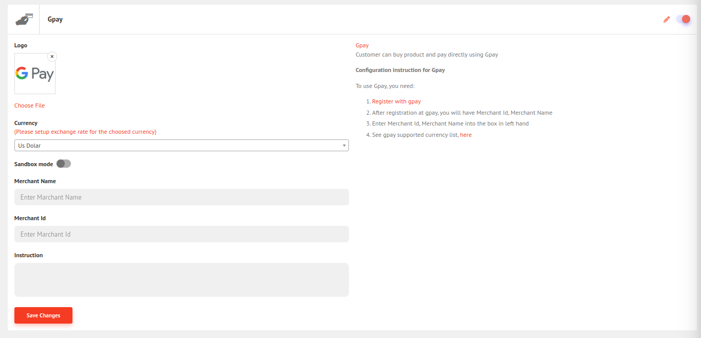 In the upper image, you can see we configure cash on delivery and save it. You can On/Off method status.